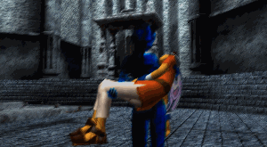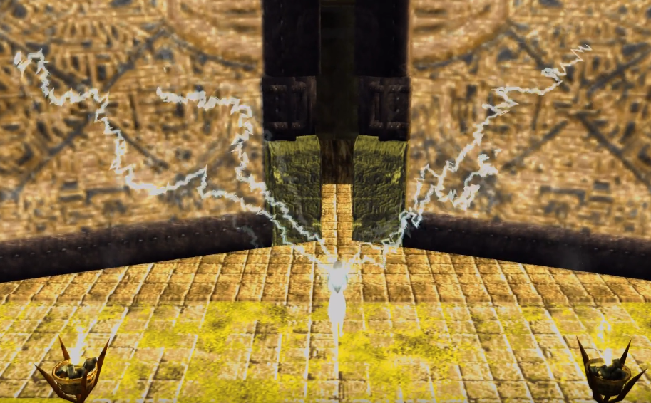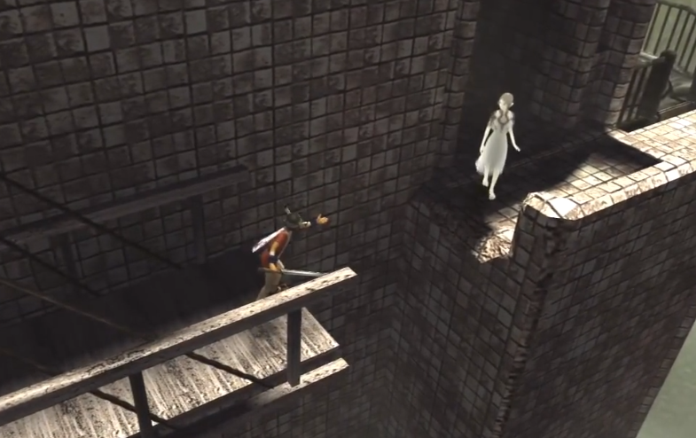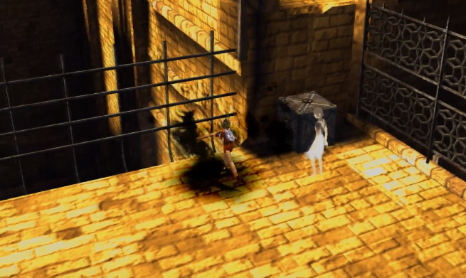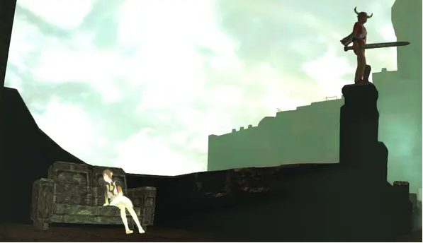 然而从断桥上掉下去的ico并没有死,还阴差阳错地得到了一把能开启封印之门的神剑 。这样他在没有yorda的帮助下也能打开城堡中的封印之门了。ico决定回到城堡把yorda救出来。
