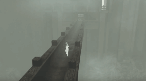 而yorda虽然比ico长得高,但是身体其实非常柔弱,那些ico能够一跃而过的裂缝,随便攀爬就能登上去的高台,她都无能为力,ico只能想尽办法为yorda开路。在游戏细节的刻画下,yorda飘逸的头发,细长的手臂,还有随风吹起的衣裙,让她真实得楚楚可怜,如同一个精美的易碎品,需要你无时无刻捧在手心里。