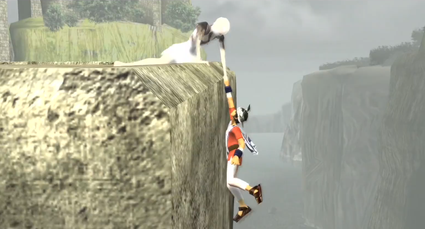 在两人的努力下,出口终于出现在眼前,两人飞奔着往前跑去,却不料此时连接出口的石桥却发生了断裂。ico差一点掉下了万丈深渊,这一次,是yorda死死地抓住了ico的手。