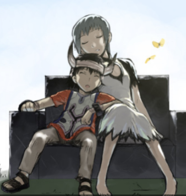 再说一个细节。本作的存档方式很有意思,必须是ico和yorda同时坐在石头沙发上才能完成存档,而两人坐在沙发上时的神情是那样的放松,仿佛此刻的平静才是他们最期望的。