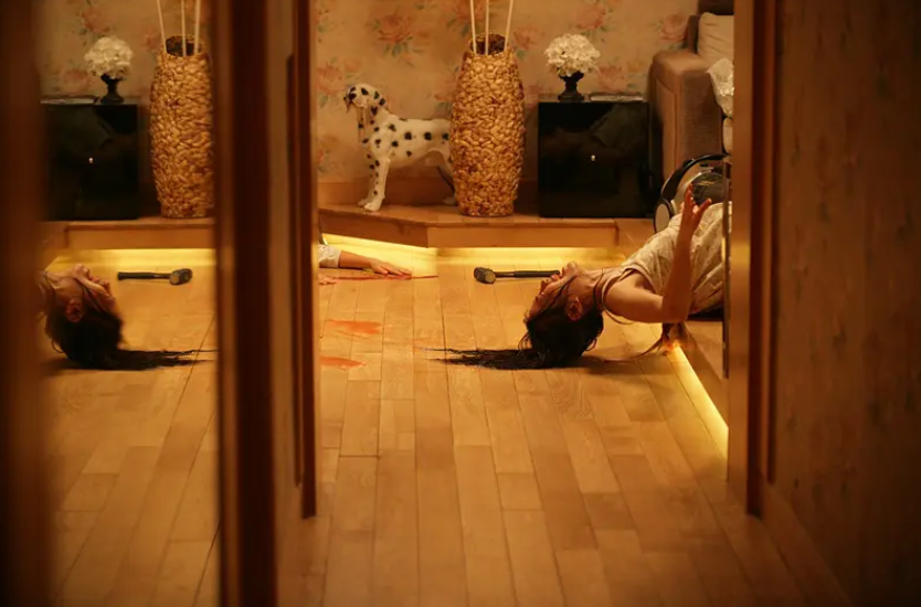 女主角杀人其实并不需要一个非常非常强大的动机,因为这只是一个比喻,通过血腥的残杀把炒楼的残酷展示出来——而炒楼这种行为背后的血腥,本来是看不见的。一部明显是虚构的电影却在开头打出一行没人信的字幕:根据真事改编。这除了是一种幽默,同时也在提醒观众,抽去那个似乎不合理的表面,这里面却有种真实的寓意。