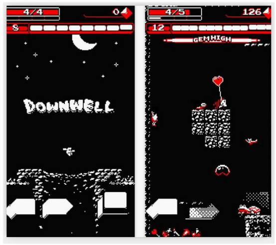 downwell 以年轻夺宝猎人为主角,他将装备上被称为「靴枪」的武器,跳入魔物们栖息的水井中寻宝;过程中可以收集宝石、还要对抗怪物。而最特别的是,每次游玩游戏时,地图的构成跟魔物的配置等也会有所不同,让玩家可以一直重复挑战游玩。
