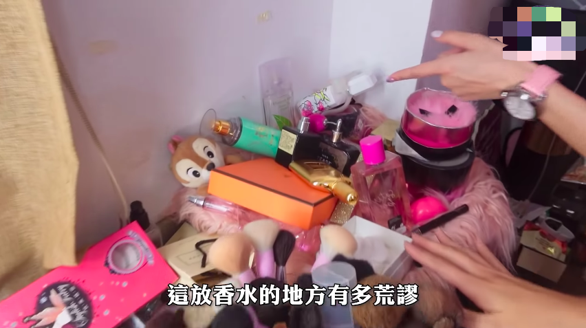 当蔷蔷开始介绍她的化妆台时,王思佳忍不住惊呼,"这放香水的地方有多荒谬",上面还积满了灰尘。