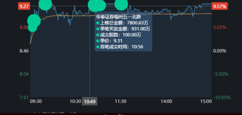 9点50分,昨日卖五大哥华泰证券“福州五一北路“再次出手卖出19998手,直接砸至开板。