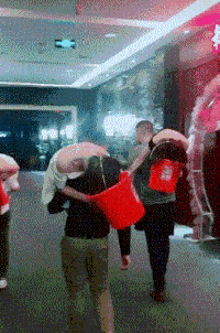 大叔你这啥造型刚吃完席连桌子都打包带回家吗