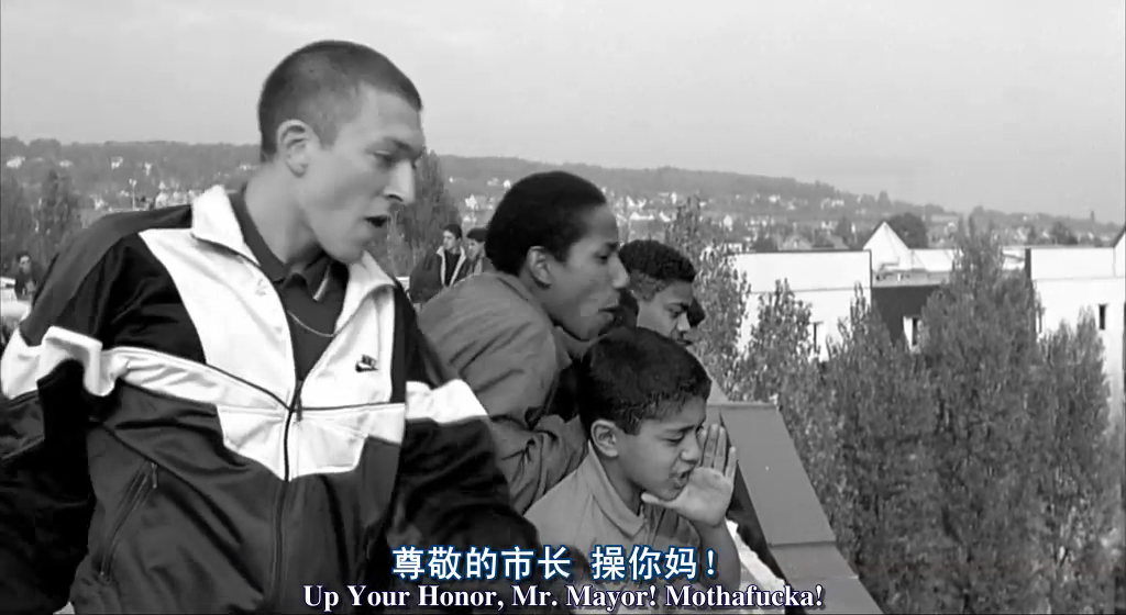 这部电影叙事很简单,一根主线讲了三个青年的一天,但探讨的问题丝毫不轻松,电影中深层次反映了法国的种族主义问题、社会阶层固化问题、警察滥用权力问题、年轻人没有前途只好无所事事逐渐走向暴力的问题。电影开场是警察滥用暴力引发了暴动游行,三个青年作为关联人员出现在荧幕上。三个人是朋友也都是外来移民,生活贫穷,毫无出路,在平时就受尽社会的歧视,这一天里更是集中得到了体现。其中最为激进的文斯甚至要用暴力报复社会,最后因朋友劝阻放下了举着的q,但在影片最后反而死于暴力。三个人个性各不相同,但终将不可避免地走向同样的结局,因为这是整个社会的问题,不是一个人几个人可以改变的。