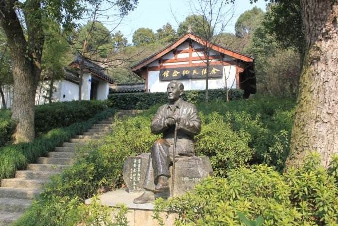 按:纪念馆背倚金鸡山,面临浣溪沙
