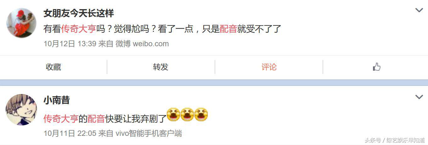 此外,电视剧的配音也是被吐槽的一个点,尤其宋轶,跟日本动漫配音的人来配真人似的尴尬至极,让网友纷纷弃剧表示难接受。