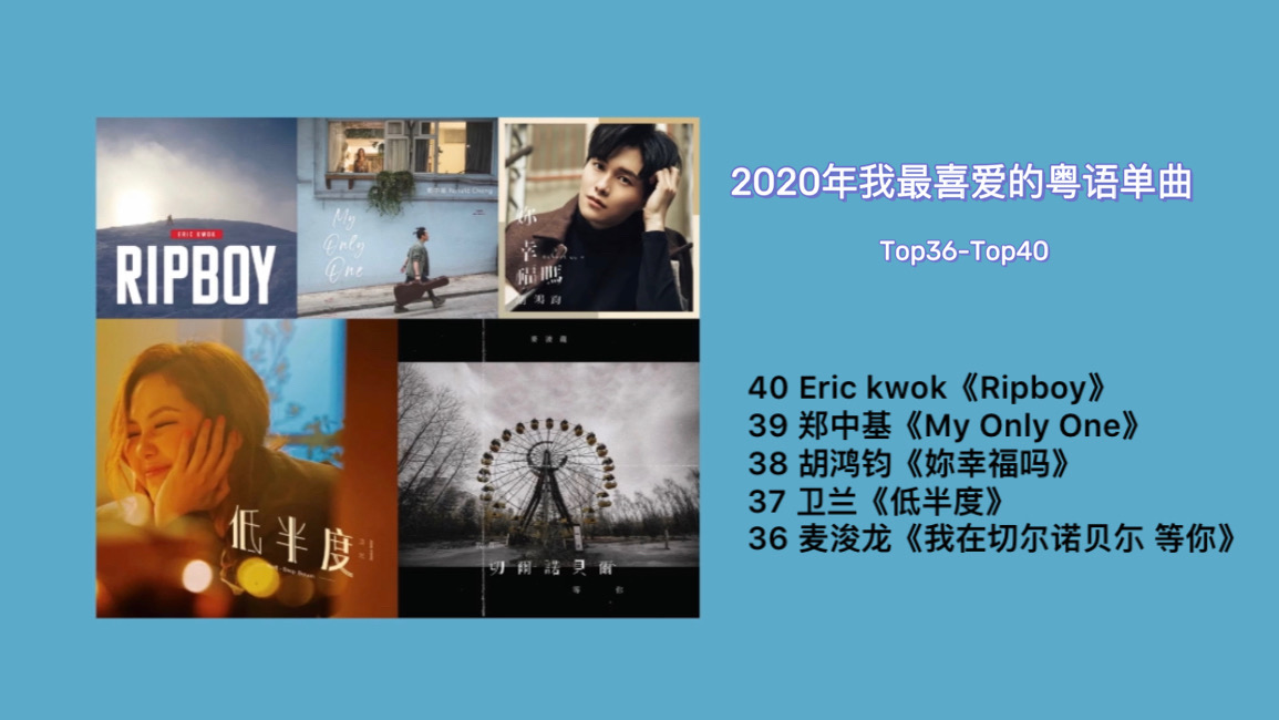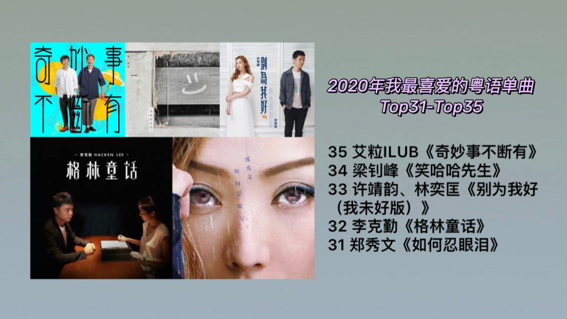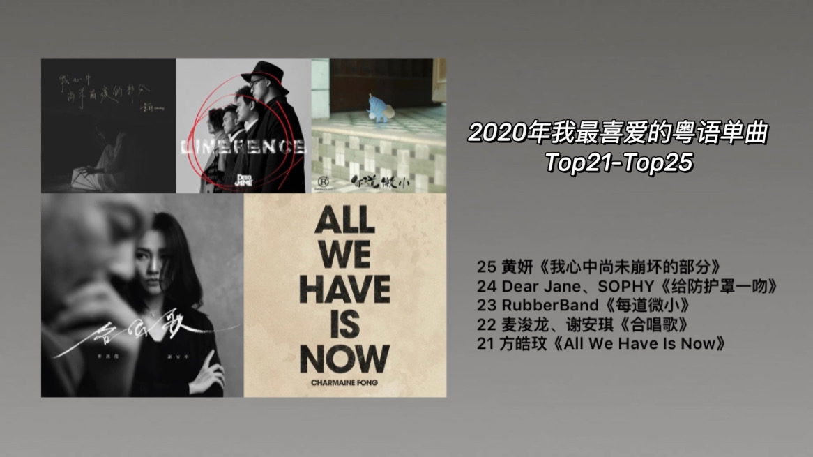 当然,我也面临了许多歌手在同一年有多首歌好歌的取舍,比如dear jane、林家谦、冯允谦、许廷铿、泳儿、陈健安、梁钊峰、陈蕾等等,但我尽量都依照内心做出我在2020听歌后的推荐。