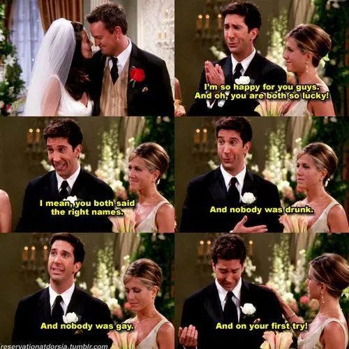 但ross却又不是一般认知里的大学教授,结了那么多次婚,和瑞秋分分合合,不知道多少人特别开心地看到,原来一个学霸,居然也可以这么糗;