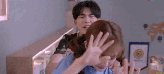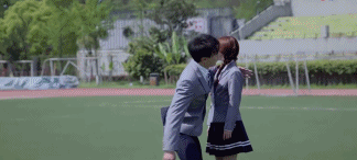 女主看到男主堂姐帮他吹眼睛里的沙子,以为他们在kiss,赶紧躲起来。