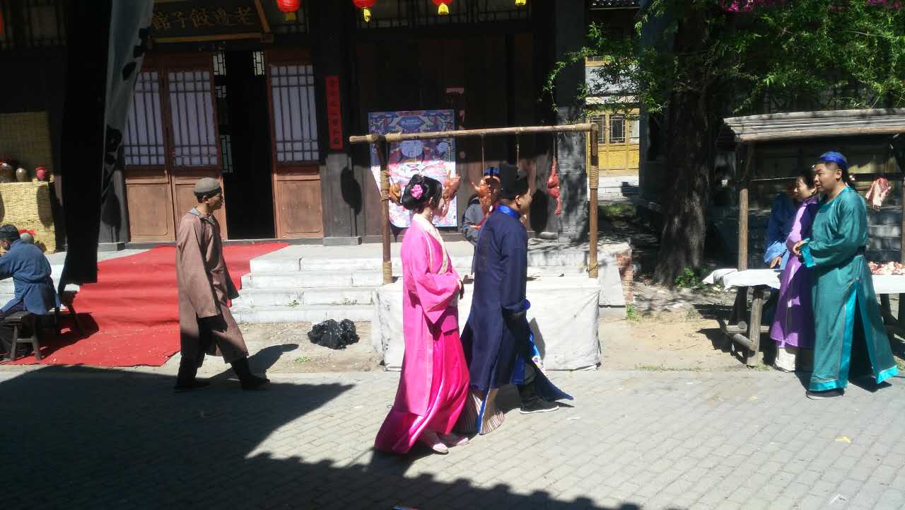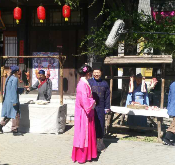 在网络大电影《老爷,别闹》中,身穿官服的冤大头相邀自己的夫人一起行走在热闹非凡的街头,虽身为官老爷,却一点老爷架子也没有,看这街头挂的各种肉肉,说明冤大头这官当得不错嘛?百姓们的生活水平完全是小康生活呀!