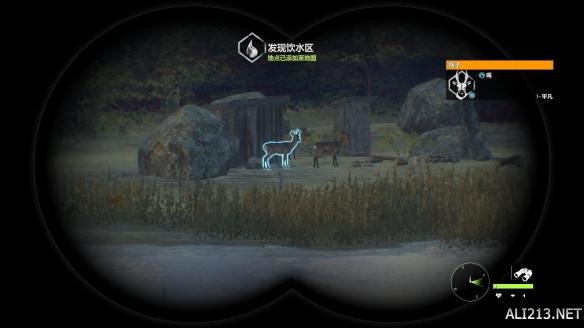 1. 伏击狩猎(能树ambusher):伏击狩猎需要猎手有足够的耐心,其次需要猎手懂得通过风向(处于目标点的下风处)和气味喷雾掩盖自身的气味,最后需要猎手懂得如何引诱动物到自己所在的狩猎区(每种动物都有对应的引诱装备)。这种狩猎方式相对来说比较枯燥,但是相对来说比较保守可靠,通常这是使用“手枪”、“霰弹枪”和“弓”时比较常用的一种狩猎方式。这种狩猎方式需要玩家找某种动物经常出没的区域例如:水源区,休息区,饮食区等(这些区域在玩家探索地图时会被标注在地图上),并且会标注动物来此处的时间段。玩家需要做的是隐蔽-等待-击杀。