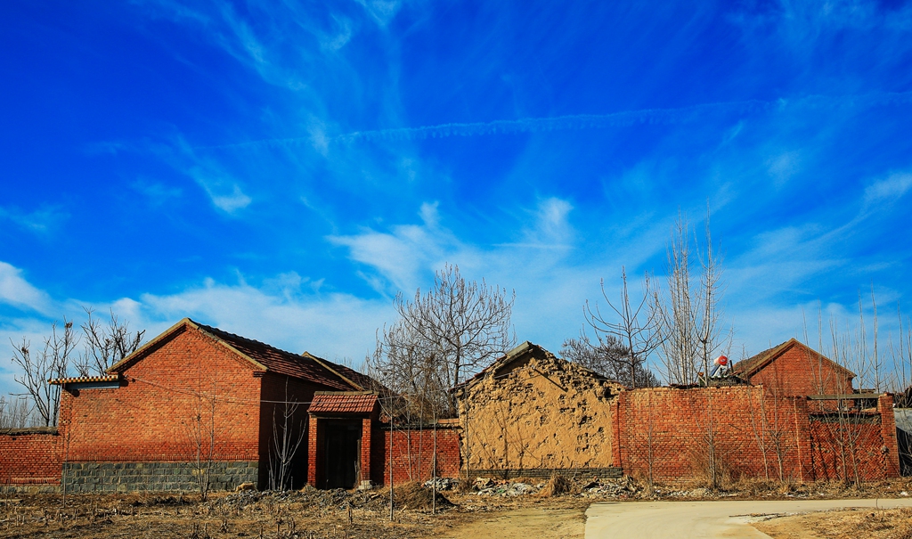 这些年,村居有了和大的变化。中间的这座土坯房子,是我们小时候住的很普遍的房子,那时村子里大部分人家都住着这样的房子。后来,条件好了,盖起了砖瓦房,前边还带着前出厦,既宽敞又明亮。