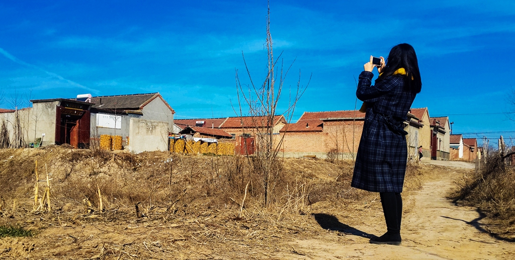 回老家的时候,跟我一起回去的女儿在村头拍照。