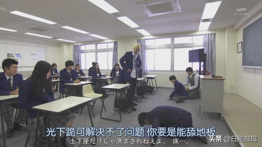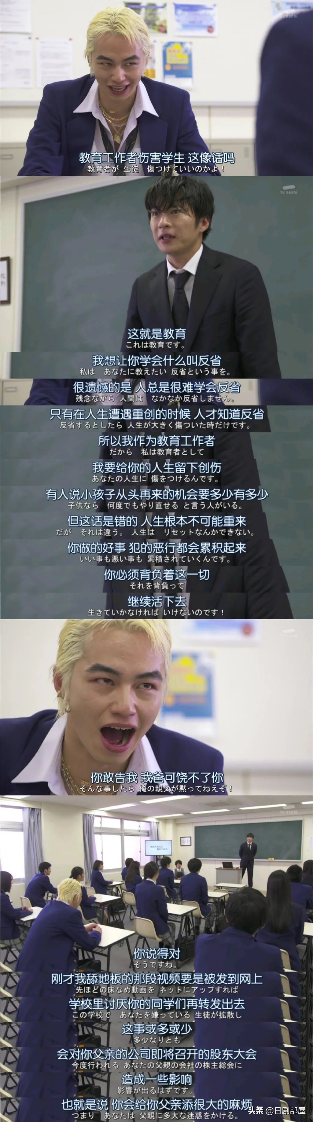 看到并不怕自己,总是笑嘻嘻的老师,带头的黄毛学生更火大了,开始各种恶搞他,让他知难而退,甚至要求他下跪、舔地板。